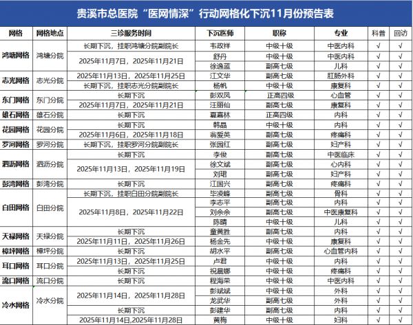 11月贵溪医疗专家团队下沉义诊时间、地点信息公布