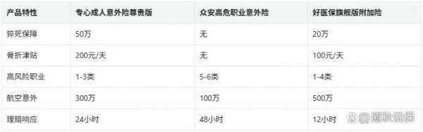 表格解读:好医保旗舰版附加意外险在响应速度上优势明显,但其主险绑定模式可能增加整体保费支出。建议自由职业者优先选择专心成人意外险,169元年保费可覆盖非机动车事故等城市高频风险。