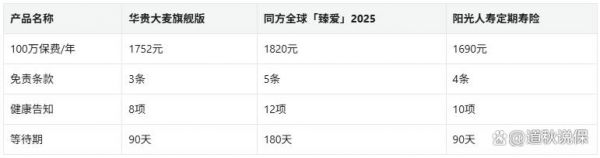 表格解读:华贵大麦旗舰版在健康告知宽松度上持续领先,对BMI超标、脂肪肝等中年人常见问题更包容。但需注意其免责条款包含战争、核辐射等特殊场景。
