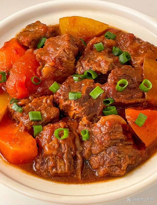 5. 加入适量清水,大火煮开后转小火炖煮约1.5 - 2小时,至牛腩软烂。