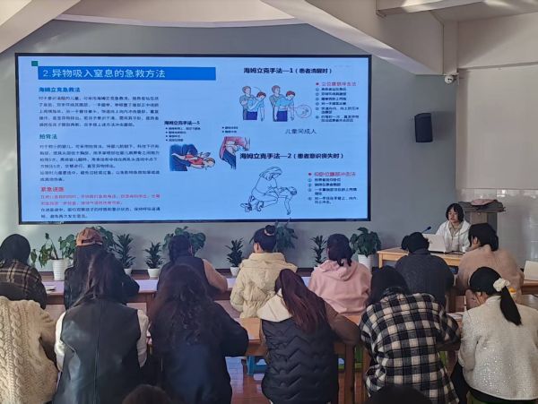 晋宁区卫健系统聚焦“预防+急救+管理”三大环节,通过“讲座+培训+实操”模式,强化教师应急处置与健康管理水平。分别开展《儿童意外伤害的预防和处理》《高危儿健康管理》《春季儿童常见感染性疾病防治》等专题讲座,覆盖教师、家长超800人次,内容涵盖海姆立克急救法、心肺复苏实操、高危儿识别干预、流感/手足口病防控等实用技能,现场互动答疑,推动“被动救治”向“主动预防”转变。