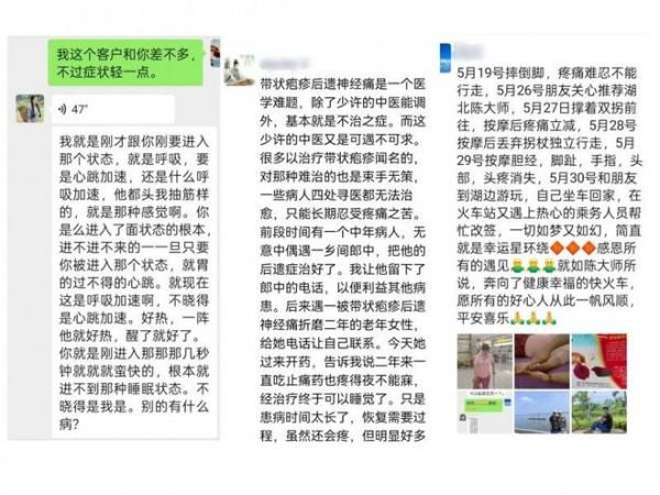 带状疱疹后遗神经痛被称为医学难题,除少数中医能调理外,多数患者只能长期忍受疼痛之苦。陈孝武在这一领域也为患者带来了希望,他曾遇到一位被带状疱疹后遗神经痛折磨两年的老年女性,老人长期服用止痛药仍夜不能寐。陈孝武将自己偶遇的乡间郎中联系方式推荐给她,经过专业调理,老人的疼痛明显减轻,终于能够安稳入睡。虽然患病时间较长,恢复仍需过程,但这种显著的改善让老人重新燃起了对健康的希望,也让陈孝武更加坚定了推广中医调理的决心。