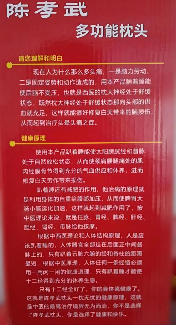 陈孝武的多功能枕头,背后有着坚实的中西医理论支撑,体现了他 “中西医结合” 的创新思维。他认为,根据人体结构原理,人体器官全部依附于后背正中间的督脉之上,只有趴着睡时,五脏六腑与脊柱的距离最短,经络传导也最为顺畅。而根据中医 “经络需劳逸结合” 的健康道理,只有让十二经得到充分的休养生息,身体才能真正健康。这款枕头正是基于这一理念设计,让人们在睡眠中就能实现经络调理,达到中医 “无为而治” 的最高治疗境界,也让健康养生变得更加简单、便捷。