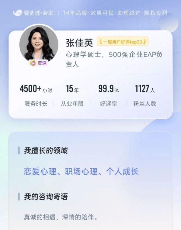 作为国内最早成立的心理健康服务平台之一,壹心理已经积累了超过14年的经验。