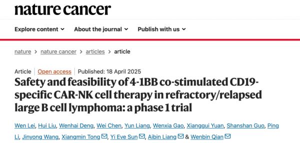 目前这一成果已发表于 Nature 大子刊 Nature Cancer,同时也是国内首个应用脐血来源 CAR-NK 治疗淋巴瘤的方案。[3]