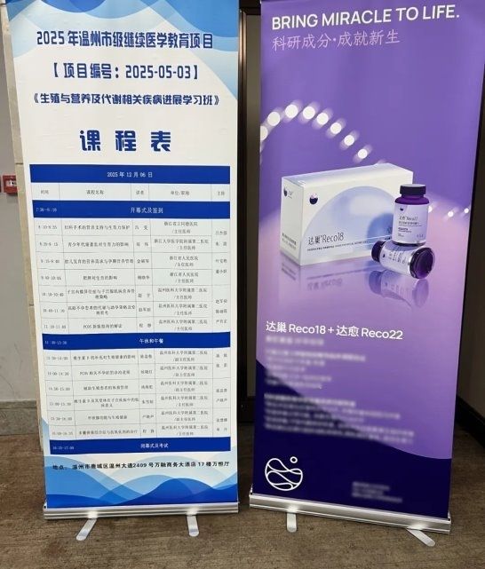 12月6日,2025年温州市级继续医学教育项目《生殖与营养及代谢相关疾病进展学习班》在温州圆满闭幕。本次学习班聚焦生殖健康与营养代谢交叉领域的临床热点与研究进展,吸引了省内各级医疗机构知名专家及相关领域医务工作者积极参与。医研共创品牌达巢与达愈携手亮相会场,全程参与学术研讨,与一线医疗专家共同探索行业发展新方向。