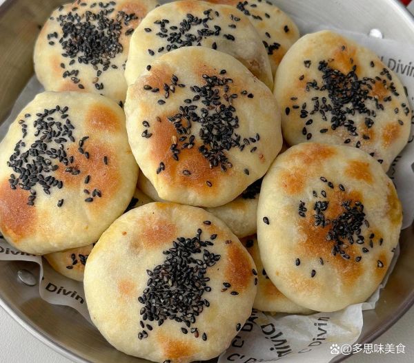 4、最后撒点白芝麻,增添点小格调。平底锅小火慢慢烙,两面金黄就好啦!要是晚上懒得折腾,就把面团扔冰箱里过夜。第二天起床直接开工,简直是睡醒即食的享受!