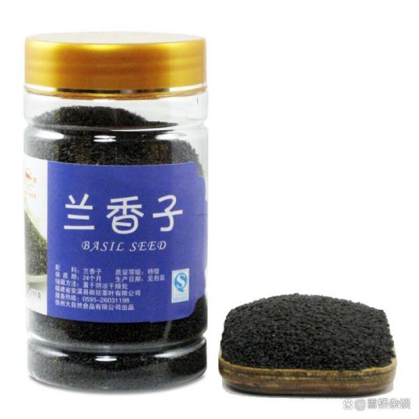 当我们将兰香子和奇亚籽放在一起时,便能发现它们在外观上的细微差别。兰香子通体呈现出深邃的黑色,形状为梭形,仔细观察,其尖端还带有一个小白点 ,表面无光泽,大小如芝麻,圆润饱满。将其放入水中,它会迅速膨胀,外周形成一圈透明的粘性物质。