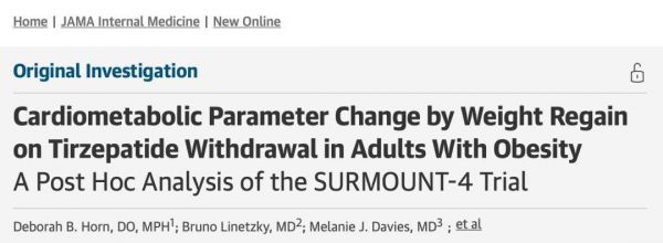 这项研究是对知名的SURMOUNT-4 试验(一项由礼来公司开展的3 期随机双盲安慰剂对照试验,观察不同剂量替尔泊肽的减重效果)的后续分析。研究对象是308 位肥胖成人,平均年龄47岁,其中7成以上是女性。
