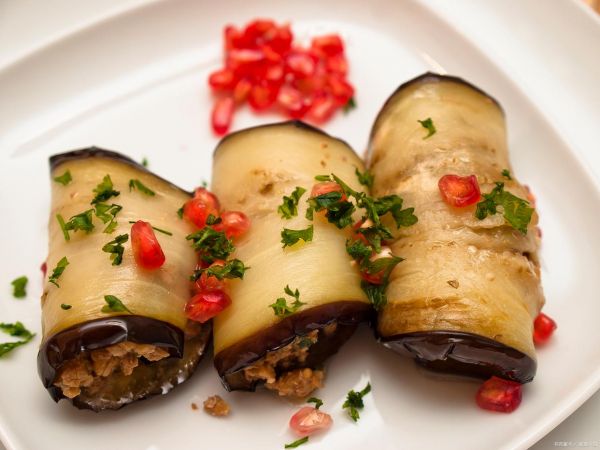 裹茄子: 将腌制好的茄子片依次裹上面粉、蛋白、面包糠。包馅卷起: 将裹好面糊的茄子片放上馅料,然后卷起来,用牙签固定。油炸至金黄: 在热锅中倒入适量食用油,将卷好的茄子放入油中,炸至金黄酥脆。