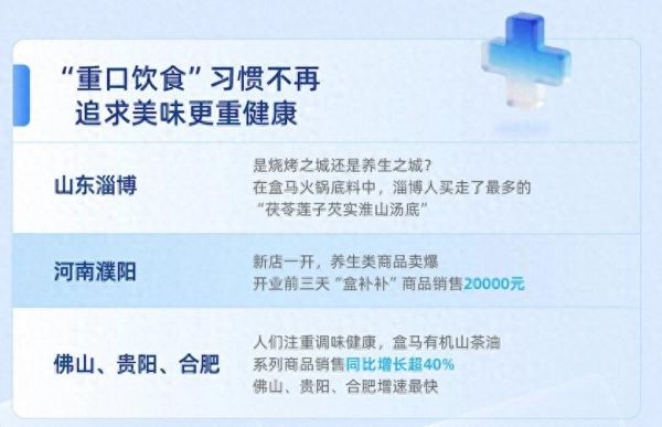 报告显示,注重食材健康已成为消费共识,在贵阳盒马门店,有机山茶油系列商品销售同比增长40%。作为盒马明星单品,山茶油不含胆固醇、富含不饱和脂肪酸、不易产生油烟,被称为最适合中国厨房的健康食用油。