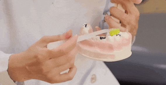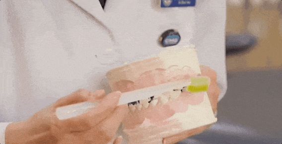 咬合面是相对容易清洁的部位,采用拉锯式来回刷即可。