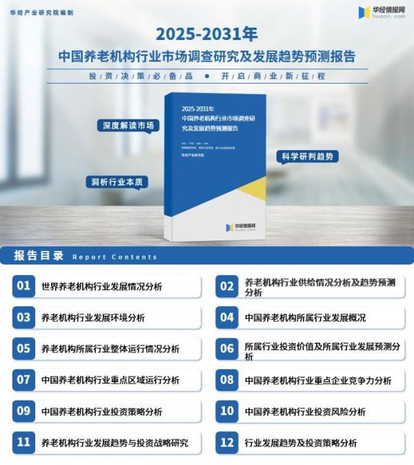 华经产业研究院研究团队使用桌面研究与定量调查、定性分析相结合的方式,全面客观的剖析养老机构行业发展的总体市场容量、产业链、经营特性、盈利能力和商业模式等。科学使用SCP模型、SWOT、PEST、回归分析、SPACE矩阵等研究模型与方法综合分析养老机构行业市场环境、产业政策、竞争格局、技术革新、市场风险、行业壁垒、机遇以及挑战等相关因素。根据养老机构行业的发展轨迹及实践经验,精心研究编制《中国养老机构行业市场调查研究及发展趋势预测报告》,为企业、科研、投资机构等单位投资决策、战略规划、产业研究提供重要参考。