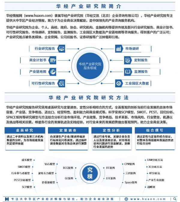 华经情报网隶属于华经产业研究院,专注大中华区产业经济情报及研究,目前主要提供的产品和服务包括传统及新兴行业研究、商业计划书、可行性研究、市场调研、专题报告、定制报告、工业园区大数据、产业链地图、工业园区大数据、产业链地图等。涵盖文化体育、物流旅游、健康养老、生物医药、能源化工、装备制造、汽车电子等领域,还深入研究智慧城市、智慧生活、智慧制造、新能源、新材料、新消费、新金融、人工智能、“互联网+”等新兴领域。