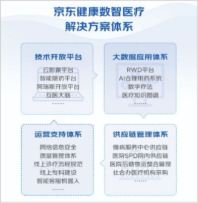 据了解,京东健康数智医疗解决方案体系包括:“技术开放平台”“大数据应用体系”“运营支持体系”及“供应链管理体系”,并通过一体化交付模式,为不同医疗服务机构提供全方位、定制化的数智医疗解决方案。