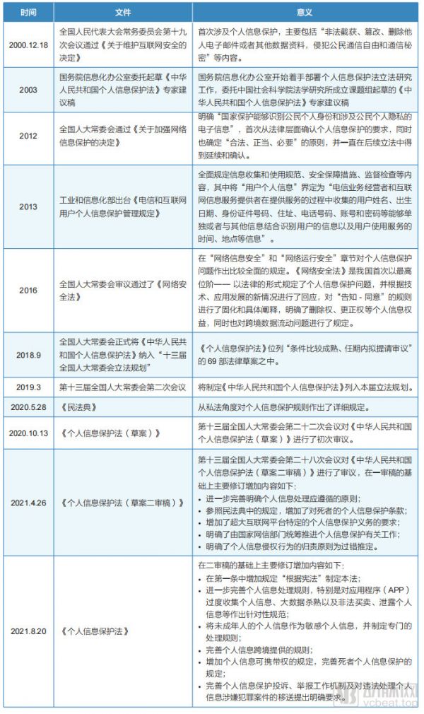 从2018年9月个人信息保护法被纳入“十三届全国人大常委会立法规划”,到2021年8月《个人信息保护法》颁行仅历时三年。我国个人信息保护法的实施,也成为了个人信息保护法立法历史进程中的重要一环。