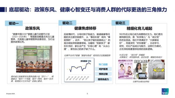 这一市场的蓬勃兴起,背后有着多股力量的共同推动。政策层面持续释放红利,健康儿童行动等国家战略将儿童营养提升至重要位置。同时,后疫情时代让家长的健康焦虑从“事后补救”转向“事前预防”,尤其关注免疫力与肠道健康。而作为消费主力的90后、95后父母,更是深度信奉“科学育儿”与“成分研究”,他们的精细化养育需求,正倒逼供给侧进行深刻创新。
