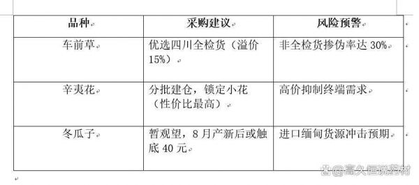 建议商户“避大宗、抓小品”,利用规格价差(如车前草全检vs非全检)套利,并密切关注海南封关对进口香料的影响。