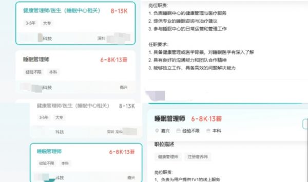 某招聘网站显示,智能家居、监测设备公司等正在招聘“睡眠管理”人才