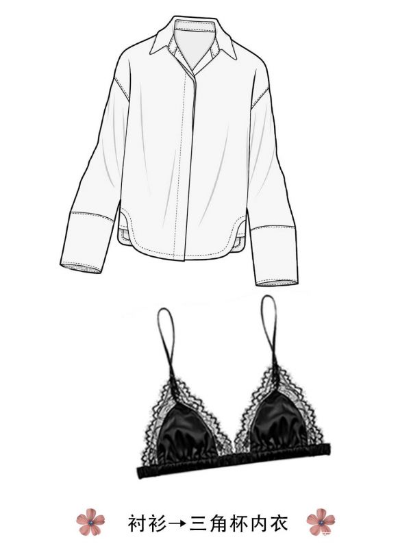 衬衫最好搭配三角杯款式,随性BF衬衫真的不能显胸大,轻薄三角杯能有效削弱身形厚度,骨干显瘦最高级~
