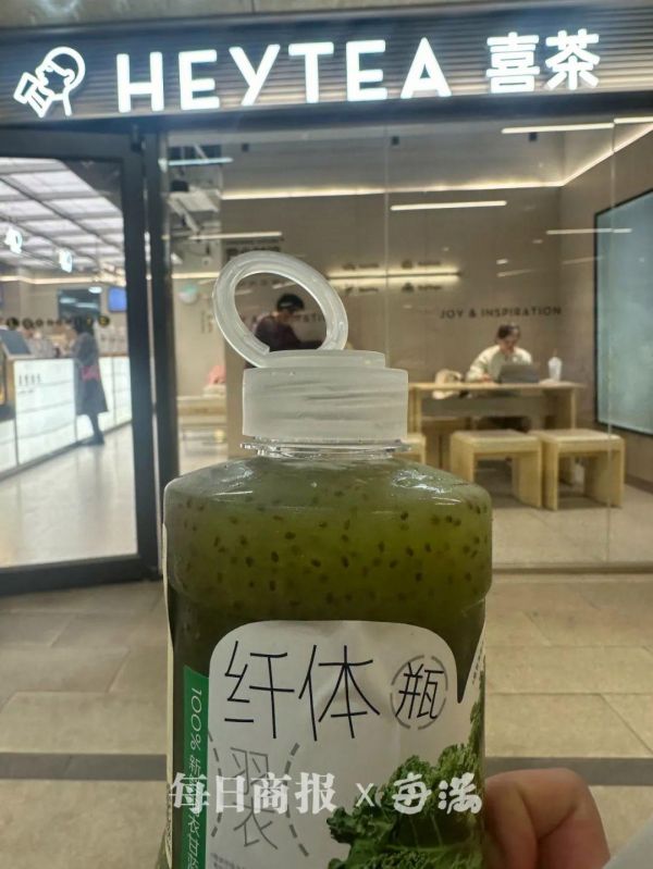 随后,记者来到喜茶(工联CC店),点了一杯羽衣纤体瓶,其在介绍栏写道:新鲜羽衣甘蓝现榨,口感微涩,色泽略有差异。制作好后记者第一时间打开品尝。出乎记者意料的是,这款茶饮的苦涩感并不强,相反尝起来比较清爽。不过,这是在记者挑选了“少甜”的基础上的结果,若是选择不另外加糖,苦涩感或许会增强不少。