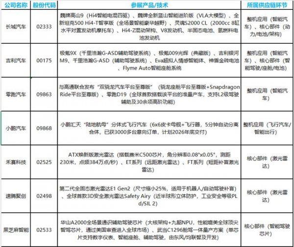 零跑汽车(09863)则与高通联合发布“双骁龙汽车平台至尊版”,零跑D19是全球首款搭载该平台的准量产车,支持L2级驾驶辅助及30余项高阶功能。小鹏汽车(09868)则在展会上展出了小鹏汇天“陆地航母”分体式飞行汽车,该汽车已获3000多台意向订单,计划2026年底交付。