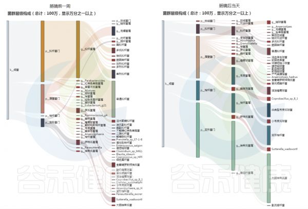 为了便于理解,我们仔细帮他做了肠镜前一周和肠镜当天菌群的对比分析。