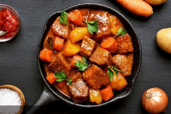 牛肉富含铁元素,有助于改善贫血状况,提高免疫力。土豆和胡萝卜富含膳食纤维和维生素,有助于维持肠道健康。