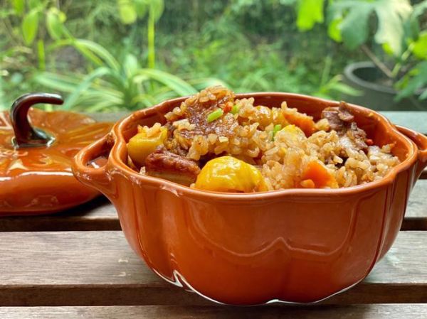 周一:菌菇豆腐蔬菜汤(250克)+糙米饭(150克)