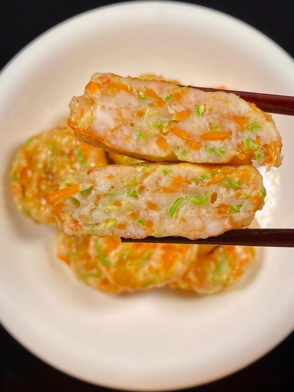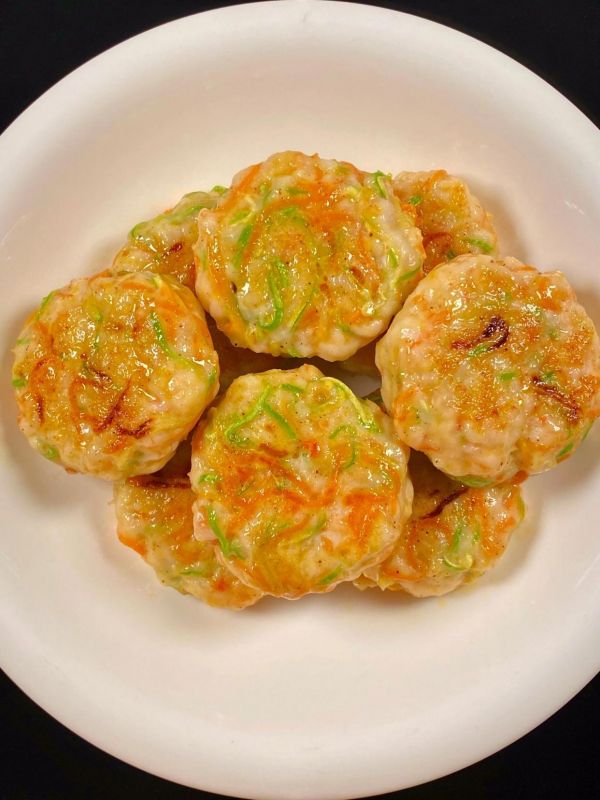 营养亮点:虾仁富含优质蛋白和钙,鸡蛋提供全面氨基酸,胡萝卜和西葫芦补充维生素A、C及膳食纤维,促进骨骼发育和免疫力提升。