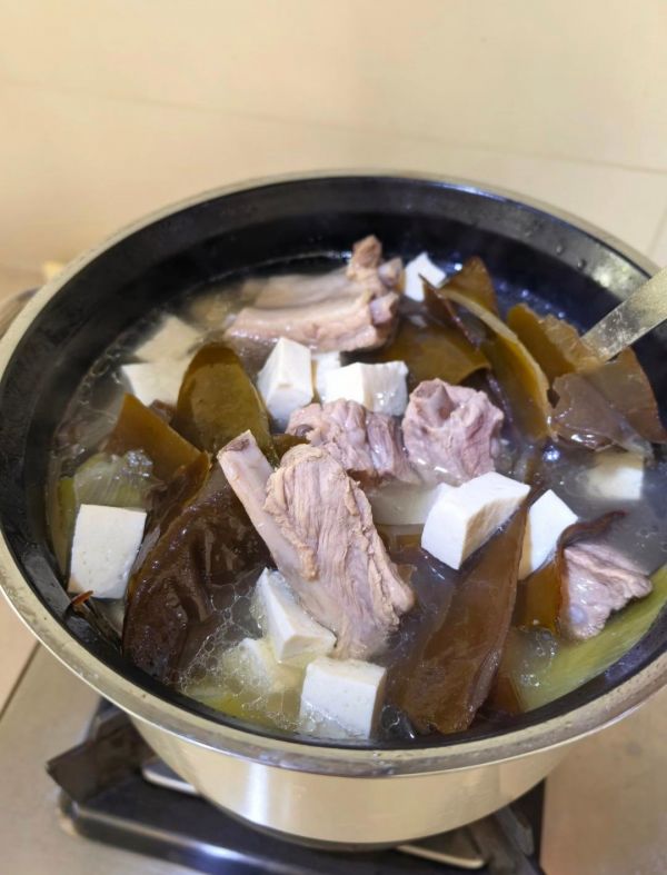 五、晚餐:豆腐海带排骨汤——补钙补碘的黄金组合