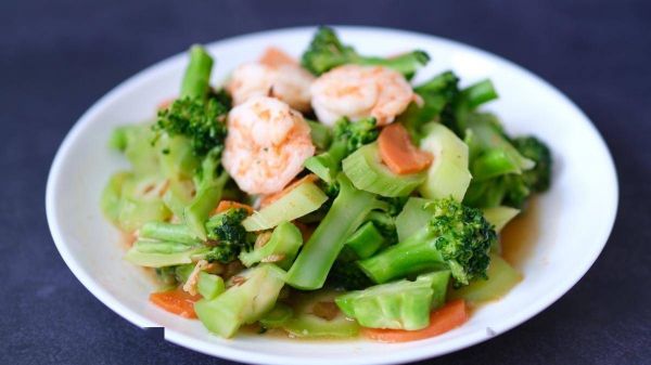 芥蓝炒虾皮:芥蓝去老茎切段,先用热水焯30秒。虾皮泡发后沥干,用油爆香后下芥蓝快炒。虾皮的钙含量是牛奶的10倍,这样搭配吸收率更高。