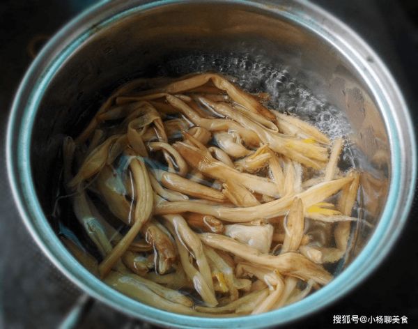先把干的黄花菜放在盆里,加点冷水泡一泡,因为干的黄花菜水分比较少,而且味道也发生了一点变化。所以咱们要先把干的黄花菜泡一泡,再搓一搓,直到泡发泡软洗干净。