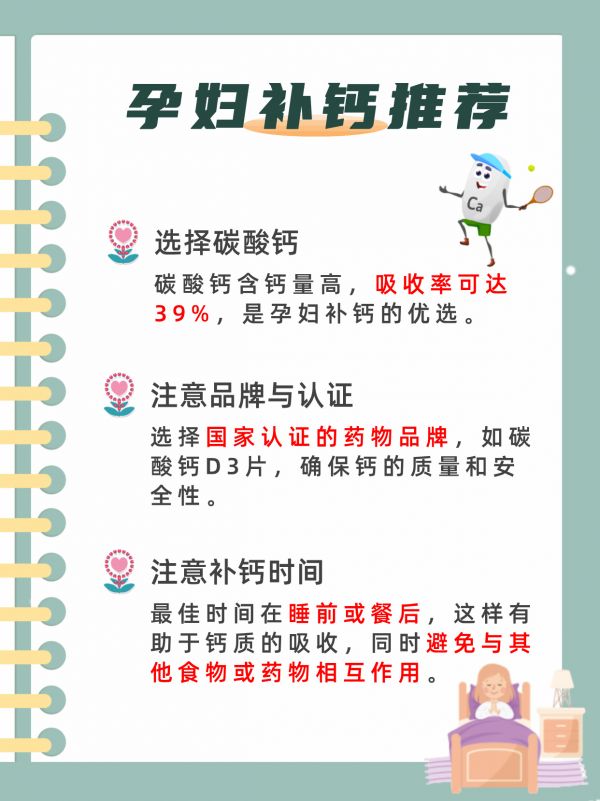 2、注意补钙时间:孕妇最好在睡前补钙,因为夜间血钙浓度较低,此时补钙有利于钙质的吸收和利用。
