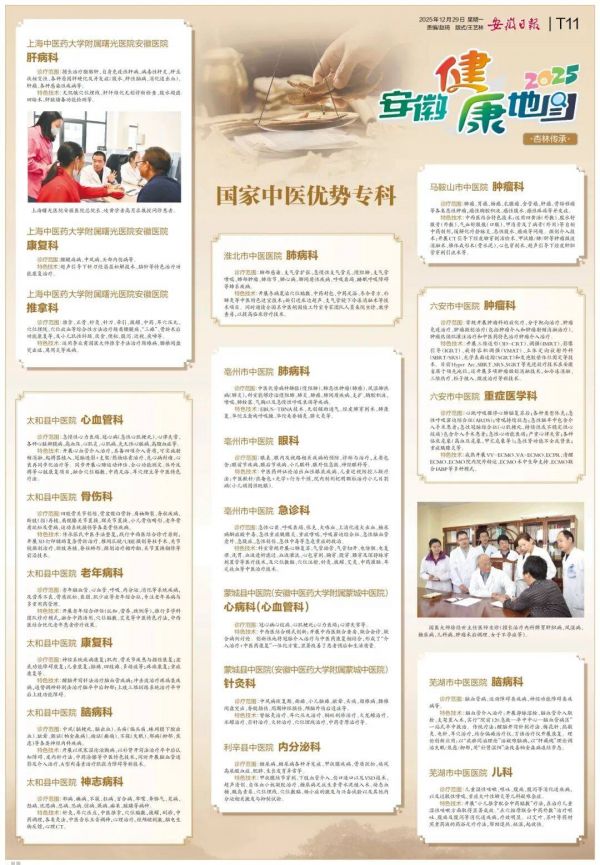 健康,是三餐四季的安稳底气,是烟火人间的幸福底色。“安徽健康地图”深度回应“病有所医、病有良医”的民生期盼,系统梳理全省优质医疗资源,从国家区域医疗中心的顶尖资源到临床重点专科的精准服务,从突发急症的黄金救援攻略到日常养生的中医智慧锦囊,都浓缩在这张地图里,让“健康有门、就医有路”成为每位安徽人的生活常态。