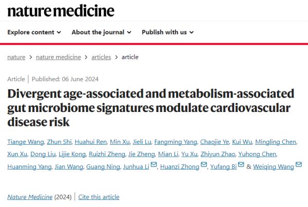 北京时间2024年6月6日,上海交通大学医学院附属瑞金医院国家代谢性疾病临床医学研究中心、上海市内分泌代谢病研究所王卫庆教授、毕宇芳教授团队与华大生命科学研究院、华大基因智惠医学研究院在《自然-医学》(《Nature Medicine》)杂志上发表论文,首次提出“肠道菌龄”的概念,认为肠道菌群是决定人体年龄的重要因素,这一年龄并不以人的生理年龄为标准。也就是说,拥有健康肠道菌群的老年人也会更“年轻”,不健康的肠道菌群让年轻人更“衰老”。这一研究揭示了肠道菌群调节代谢衰老的潜在价值,有望为衰老评价体系提供新标志。