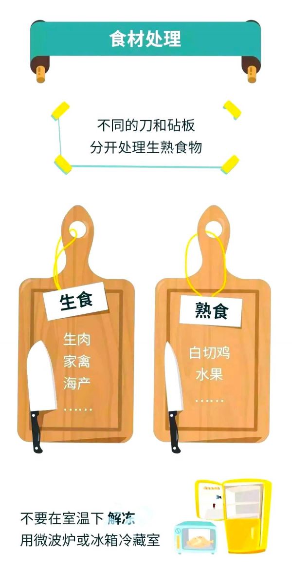 在处理食物时,必须严格遵守生熟食品的分开原则,这包括食物的存放和处理工具的区分。生食和熟食必须分开放置,避免交叉污染,确保食材的安全性和卫生性。同时,在加工过程中的用具,比如案板和刀具,也需要生熟分开,处理生食和熟食要使用不同的器具,这样可以有效防止潜在的交叉污染。