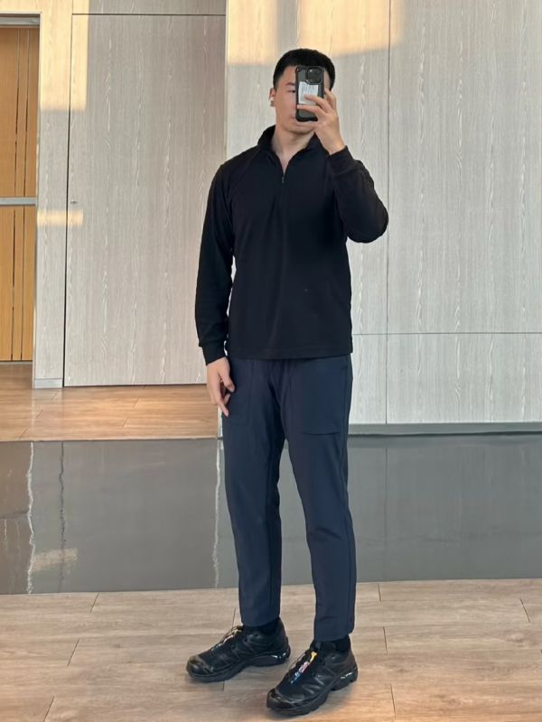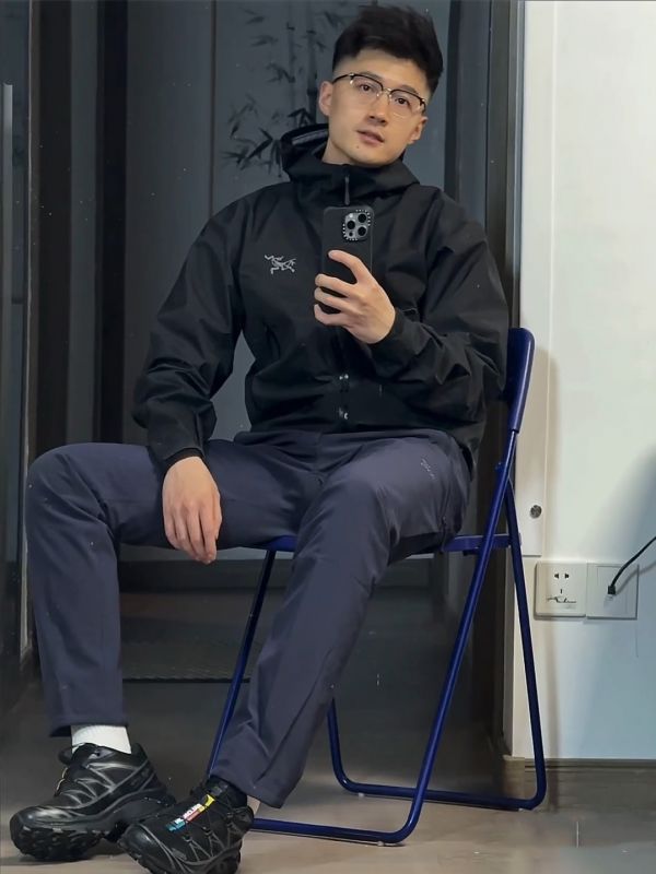 始祖鸟冲锋衣配萨洛蒙运动鞋,既能满足上班通勤需求,又适用于日常休闲场合,在任意场景中都能撑得起排面。