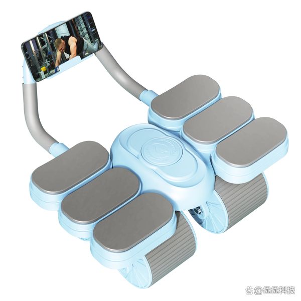 手机支架设计:健腹轮带有手机支架,用户可以在运动的时候观看视频,增加锻炼的趣味性,让你在训练与娱乐之间轻松切换,提升健身体验。