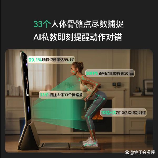 这款设备融合了动作捕捉与AI分析技术,能够实时追踪33个身体关节点,识别精度高达99.1%,帧率超过50fps。当用户做动作时,系统会立即判断姿势是否标准,并通过语音提示纠正偏差,相当于一位随时在线的数字私教,帮助建立正确的肌肉记忆。