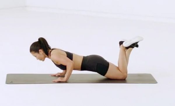 俯卧撑就可以很好的锻炼我们的双臂胸部与腹部肌肉,但是对于女性而言,身体力量很难完成一组标准俯卧撑,所以跪姿俯卧撑就应声而来,这个动作也可以达到相应的效果。