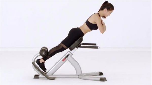 在弯曲的过程中我们尽可能让头部向地面贴近,随后腰部发力挺身,这样就完成了一个山羊挺身动作。