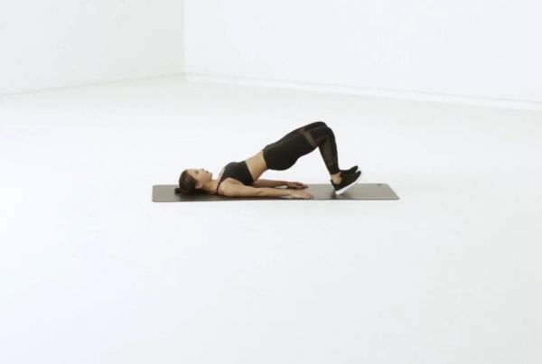 仰卧在垫子上,弯曲膝盖,脚跟着地,向上抬起脚趾,使脚尖的方向指向斜上方。发力时将臀部向上抬起,直至大腿与身体背部形成一条直线的状态;而当臀部抬起时,上背部要紧贴地面,呈一个支撑地面的运动;注意保持住该动作,保持到臀部竭力即可放下来。保持全程的呼吸均匀,该动作可练习腹部下沉,臀部上挺的发力模式;收腹,绷紧背部,用脚跟支撑。支撑抬臀