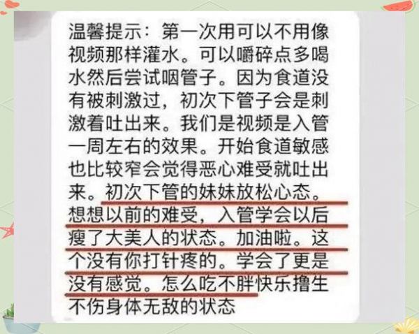 在追求极致瘦身的群体中,未成年人也占据了相当大的比例。这让我想起了“仙女管”这一极端减肥的典型案例。许多人可能仅从名字上无法理解其真正含义,但事实上,它就是一种被用来催吐的塑料管。这种管子的存在,无疑加剧了极端减肥的危害性。