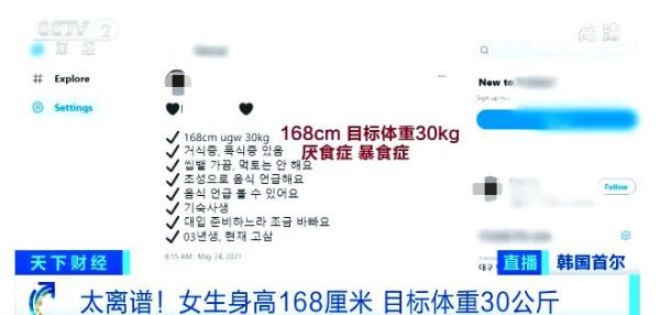 韩国极端减肥引发社会担忧:1米68女生目标体重30公斤