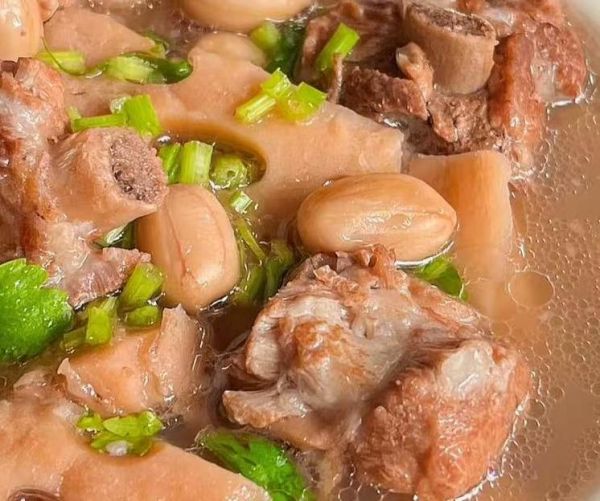 做法:牛骨焯水后炖1小时,加入萝卜块继续炖30分钟,最后加盐调味。
