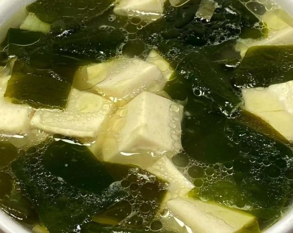 做法:海带泡发切丝,豆腐切块。锅中烧开水,放入海带和豆腐煮10分钟,最后加虾皮和盐调味。