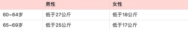 按照国民体质测试标准来看,握力达不到以下标准,就可判断为运动功能较差。