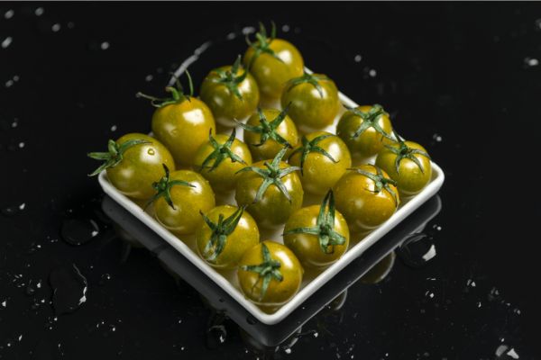 绿色圣女果的维生素C最高,维生素C能促进胶原蛋白的合成,维持血管弹性。它的口感清新,微甜,番茄味儿不浓,酸味比较淡,适合不喜欢吃酸的朋友。