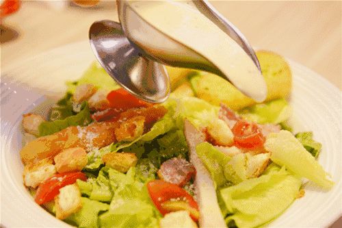 5 淋上沙拉酱就完成。